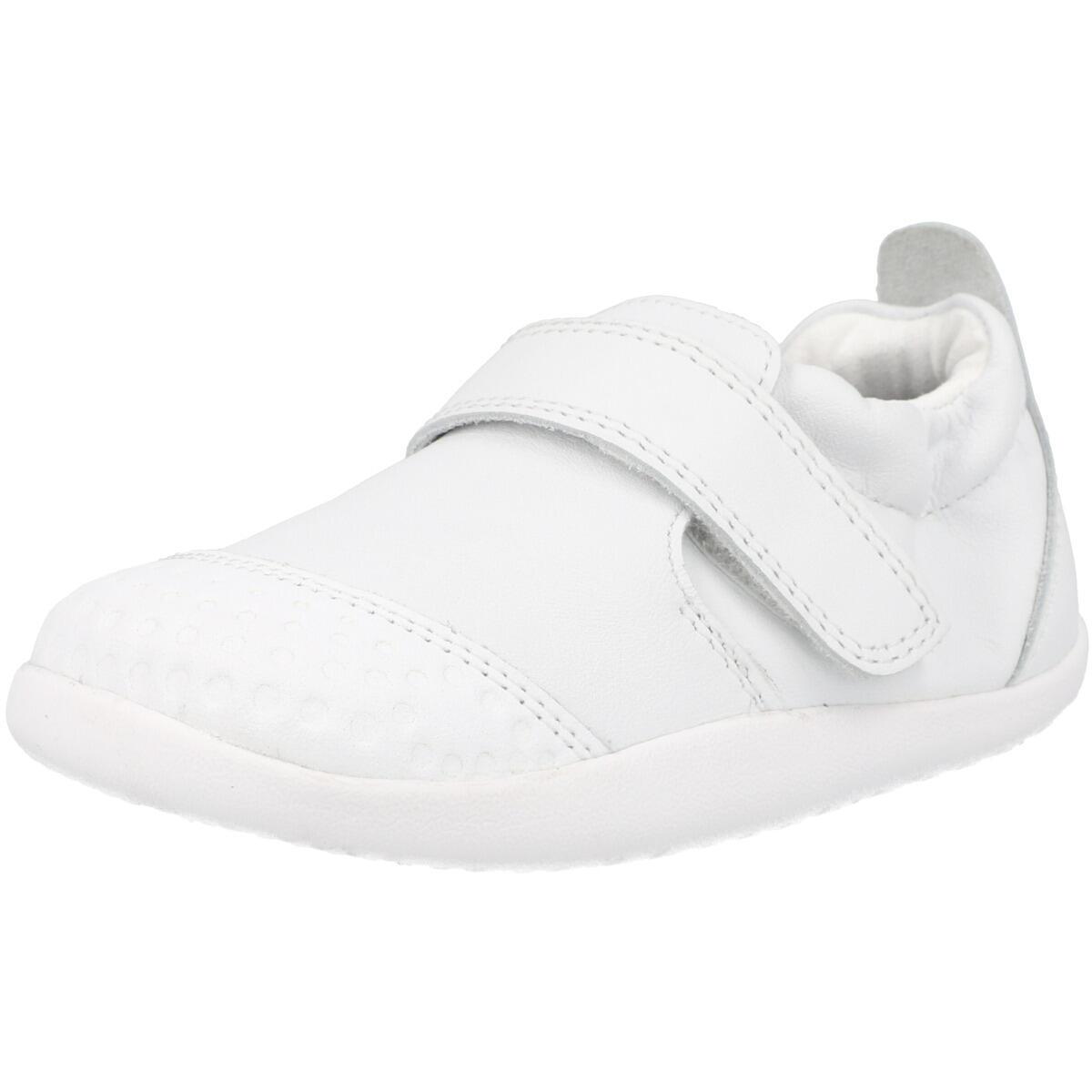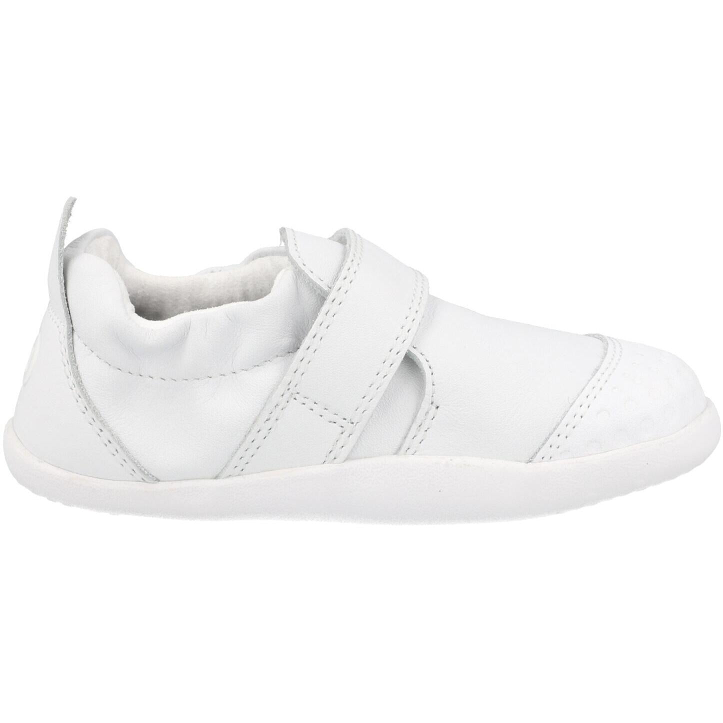 The Bobux Xplorer Go in white is perfect for little adventurers starting their journey. Made from premium soft leather, it features a simple strap fastening and elastic ankle opening for secure comfort. Its embossed toe cap and flexible sole make it an ideal choice for crawling and first steps.